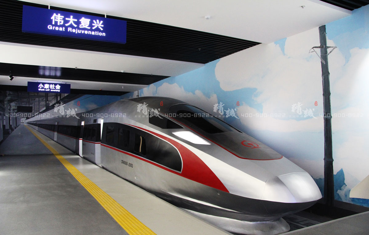 通過語音播報:“歡迎您乘坐由一公司擔(dān)當(dāng)?shù)腉2018次復(fù)興號列車,本次列車是由小康社會站駛向偉大復(fù)興站......”,引導(dǎo)參觀者乘坐復(fù)興號高鐵模型,體現(xiàn)中鐵北京工程局一公司像復(fù)興號高鐵一樣,為實現(xiàn)中華民族偉大復(fù)興的中國夢而繼續(xù)前行。